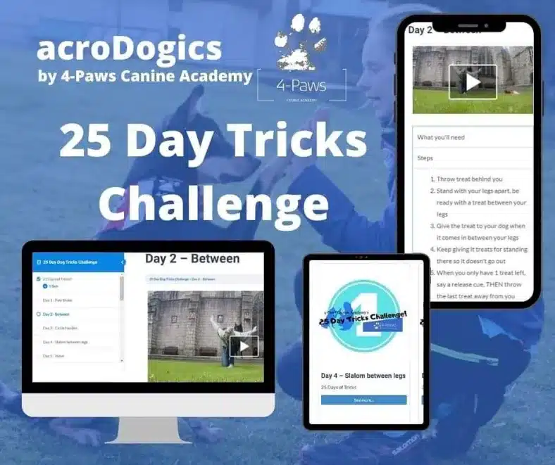 Velkommen til 25 Day Dog Tricks Challenge på AcroDogics, udbudt af 4-Paws Canine Academy – et sjovt og inspirerende online kursus, der styrker båndet mellem dig og din hund, mens I sammen lærer spændende nye tricks. I løbet af 25 dage vil du og din hund dykke ned i alt fra sjove twists, og spring, til andre imponerende hunde tricks, der med garanti vil imponere venner og familie. Du vil få ét nyt trick hver dag i 25 dage, og efterfølgende vil du få adgang til vores BONUS bibliotek af extra hunde tricks. Kender du allerede det trick, som du bliver præsenteret for, så giver vi dig en større udfordring med det trick, da tricks altid kan udvides, udvikles, eller bygges videre på. Uanset om du er erfaren indenfor tricks verdenen eller helt ny i tricks træning, er kurset tilpasset alle niveauer. Med trin-for-trin videovejledning, eksperttips og motiverende udfordringer bliver hver træningssession en hyggelig og lærerig oplevelse. Tilmeld dig i dag og oplev glæden ved at se din hund blive mere selvsikker, lydig og dygtig – ét trick ad gangen. Lad os gøre træningen til noget, der får både dig og din hund til at logre!